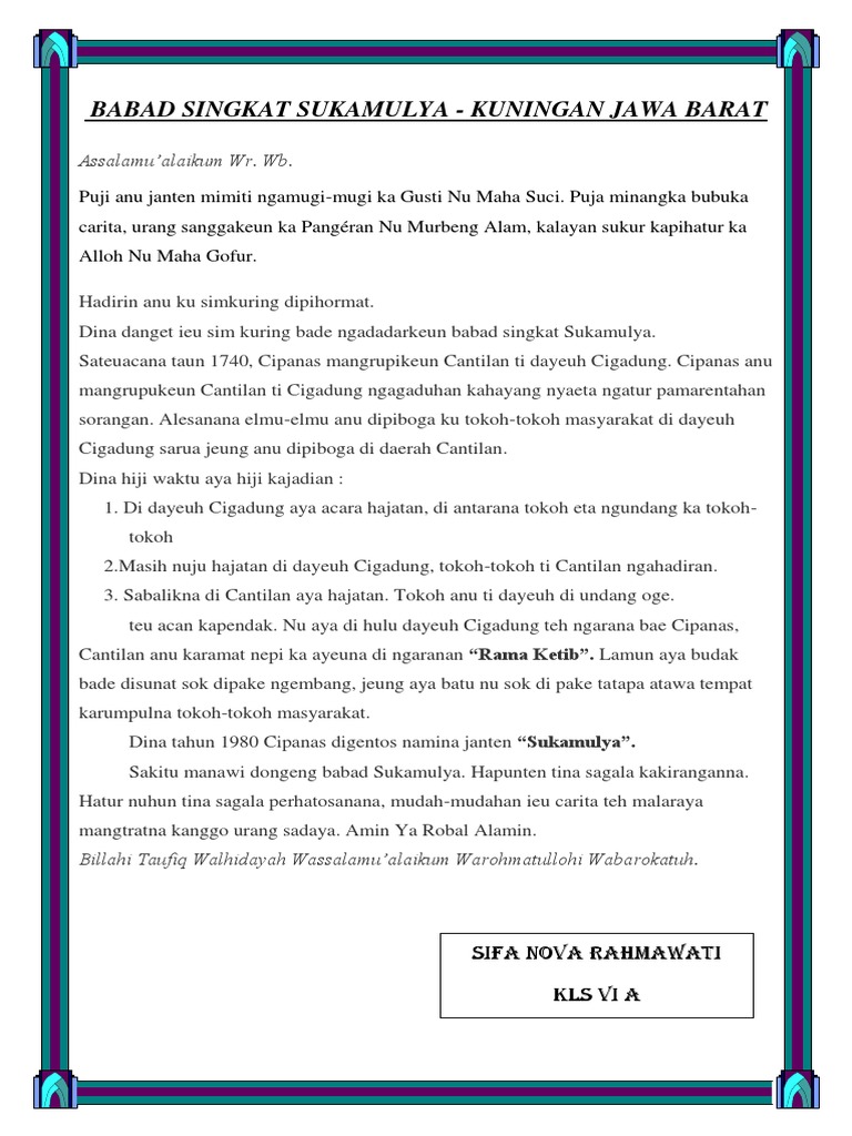 Salam pamuka (salam pembuka) assalamu'alaikum wr. Begitulah contoh soal song bahasa inggris beserta jawabannya yang bisa dibuat untuk latihan mengerjakan soal pilihan ganda karena setiap tahun dari kelas 10 sampai kelas 12 ada materi dan soal song bahasa inggris. More images for bagian bagian biantara dan contohnya » Mar 10, 2020 · di bagian akhir ini akan juga disajikan contoh pidato bahasa sunda beragam tema yang bisa dijadikan inspirasi. Semoga dapat membantu dan memberikan ilmu yang bermanfaat bagi kita semua. Jan 28, 2021 · contoh biantara sunda singkat assalamualaikum wr wb terimakasih sudah berkunjung ke halaman blog ini. Daerah sekolah menengah pertama tuliskeun conto salam bubuka. Kacindekan atawa ringkesan biantara 6. Aug 06, 2020 · struktur biantara bahasa sunda. Pidato bahasa sunda (biantara) beserta contoh tentang pendidikan, perpisahan, kebersihan, kesehatan dan lainnya. Contoh biantara atau pidato bahasa sunda mengenai bulan ramadhan biantara bahasa sunda mengenai bulan ramadhan beserta bagian bagiannya. Agar dapat membuat dan menampilkan biantara dengan baik dan benar, anda perlu memahami contoh biantara. Ngaoskeun ayat suci al quran 3.
