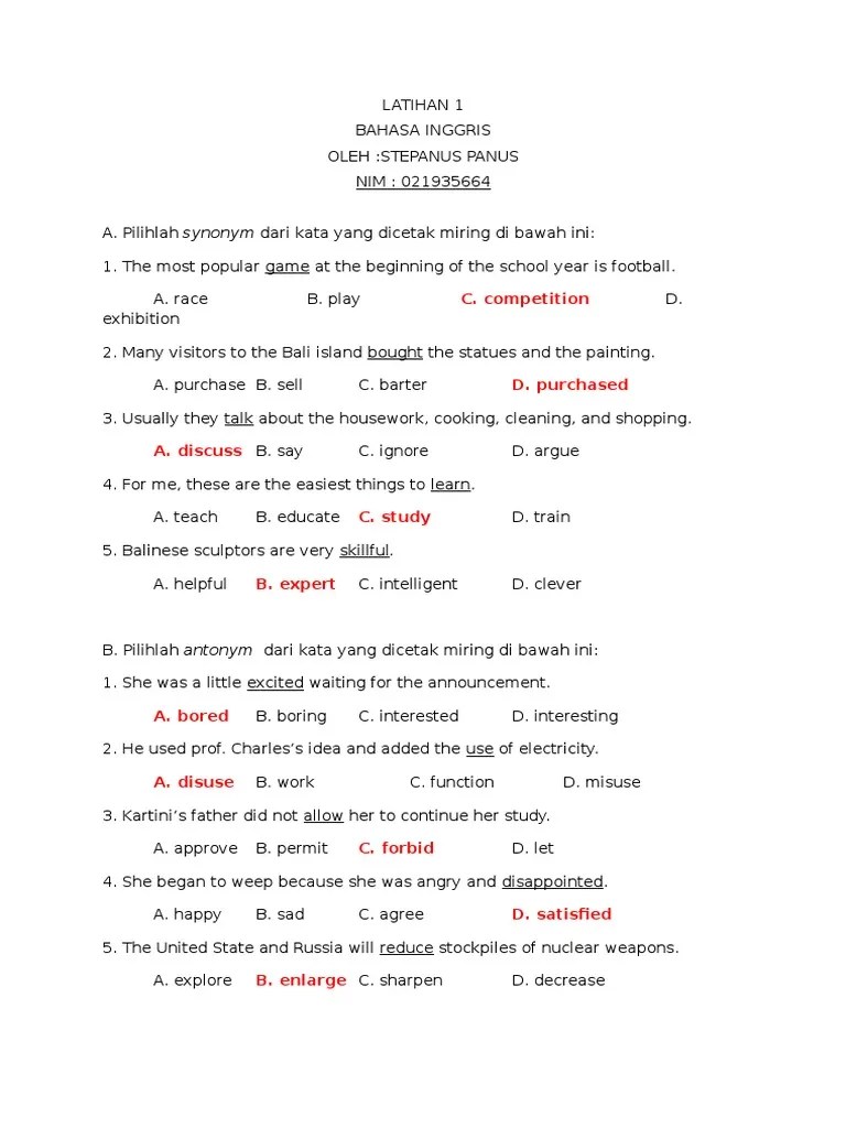 Beli produk kamus sinonim antonim bahasa inggris berkualitas dengan harga murah dari berbagai pelapak di indonesia. Lebih dari 6.000 kosakata bahasa inggris yang dilengkapi persamaan kata dan lawan kata dari makna yang umum sampai spesifik. Ori kamus lengkap sinonim antonim bahasa inggris london di tokopedia ∙ promo pengguna baru ∙ cicilan 0% ∙ kurir instan. ∙ promo pengguna baru ∙ kurir instan . Persamaan kata ini bermanfaat untuk memvariasikan kosa kata .